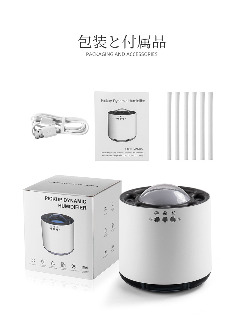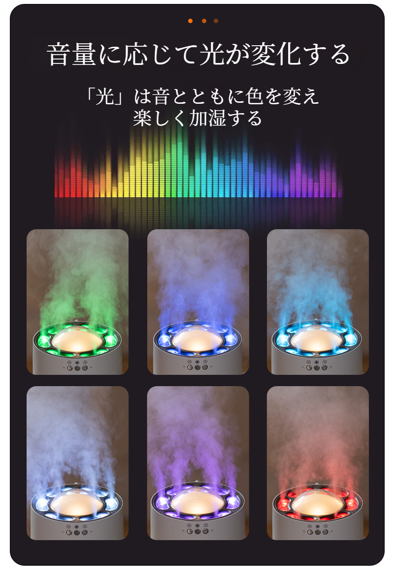 ダイナミックサウンドピックアップ加湿器、多機能、クールでカラフル、小型ポータブルデスクトップ噴霧アロマセラピーマシン